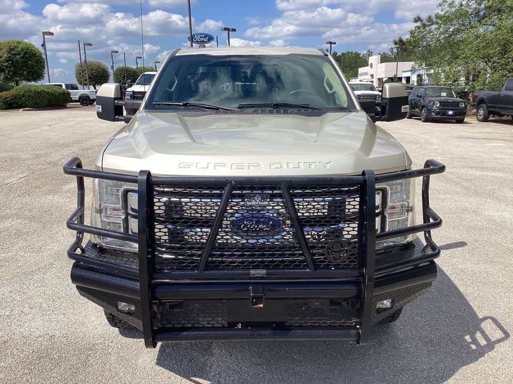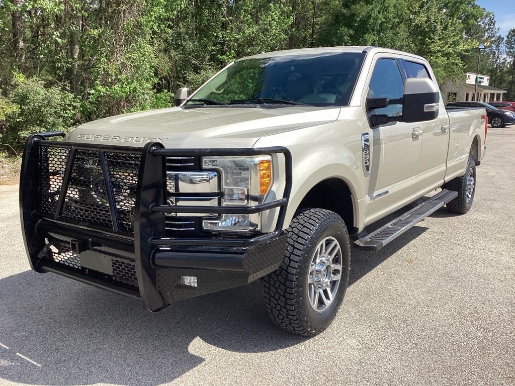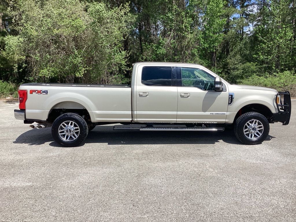 This 2017 Ford F-350SD Lariat in White Gold Metallic comes with the following features: Power Stroke 6.7L V8 DI 32V OHV Turbodiesel TorqShift 6-Speed Automatic 4WD 4WD GVWR: 11,300 lb Payload Package, Order Code 618A, 4WD, 10 Speakers, 110V/400W Outlet, 3.73 Axle Ratio, 4-Wheel Disc Brakes, 6" Angular Chrome Extended Running Boards, ABS brakes, Adjustable pedals, Air Conditioning, All-Weather Floor Mats, Alloy wheels, AM/FM radio: SiriusXM, Auto-dimming Rear-View mirror, Automatic temperature control, BLIS Blind Spot Information System, Brake assist, Bumpers: chrome, CD player, Compass, Delay-off headlights, Driver door bin, Driver vanity mirror, Dual front impact airbags, Dual front side impact airbags, Electronic Stability Control, Emergency communication system: SYNC 3 911 Assist, Exterior Parking Camera Rear, Flow-Through Console, Front anti-roll bar, Front Bucket Seats, Front Center Armrest, Front dual zone A/C, Front fog lights, Front Leather Seating Surfaces 40/Console/40, Front reading lights, Fully automatic headlights, Heated door mirrors, Illuminated entry, Leather steering wheel, Low tire pressure warning, Outside temperature display, Overhead airbag, Overhead console, Panic alarm, Passenger door bin, Passenger vanity mirror, Power door mirrors, Power driver seat, Power passenger seat, Power steering, Power windows, Radio data system, Radio: Premium Sony Audio w/Single-CD/MP3 Player, Rear CHMSL Camera, Rear Parking Sensors, Rear reading lights, Rear seat center armrest, Rear step bumper, Rear window defroster, Remote keyless entry, Security system, SiriusXM Radio, Speed control, Split folding rear seat, Steering wheel mounted audio controls, SYNC 3 Communications & Entertainment System, Tachometer, Telescoping steering wheel, Tilt steering wheel, Traction control, Trip computer, Turn signal indicator mirrors, Upfitter Switches (6), Variably intermittent wipers, and Wheels: 18" Bright Machined Cast Aluminum.