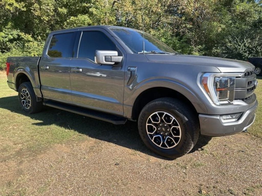 This 2022 Ford F-150 Lariat in Gray Metallic comes with the following features: 3.5L V6 EcoBoost 10-Speed Automatic 4WD Equipment Group 502A High (2nd Row Heated Seats, Heated Steering Wheel, Leather-Trimmed Bucket Seats, LED Projector w/Dynamic Bending Headlamps, Onboard 400W Outlet, Power Glass Sideview Mirr w/Chrome Skull Caps, Power Tilt/Telescoping Steering Column w/Memory, Radio: B&O Sound System by Bang & Olufsen, Rain-Sensing Wipers, Universal Garage Door Opener, and Wireless Charging Pad), Ford Co-Pilot360 Assist 2.0 (DISC) (Connected Built-In Navigation, Evasive Steering Assist, Intelligent Adaptive Cruise Control w/Stop & Go, Intersection Assist, and Speed Sign Recognition), FX4 Off-Road Package (Tray Style Floor Liner (47W)), Lariat Chrome Appearance Package (6 Bright Polished Running Board, Chrome 2-Bar Grille w/4 Minor Bars, Chrome Door & Tailgate Handles w/Body-Color Bezel, Chrome Single-Tip Exhaust, Chrome Skull Caps on Exterior Mirrors, and Wheels: 18 Chrome-Like PVD), Lariat Sport Appearance Package (Accent-Color Angular Step Bars, Body-Color Front & Rear Bumpers, Box Side Decals, Dark 2-Bar & 1 Minor Bar Style Grille, and Wheels: 18 6-Spoke Machined Aluminum), Tow Technology Package (360 Degree Camera, Integrated Trailer Brake Controller, and Pro Trailer Backup Assist), 18 Machined-Aluminum Wheels, 4-Wheel Disc Brakes, 7 Speakers, ABS brakes, Adjustable pedals, Air Conditioning, Alloy wheels, AM/FM radio: SiriusXM with 360L, Auto High-beam Headlights, Auto-dimming door mirrors, Auto-dimming Rear-View mirror, Automatic temperature control, Brake assist, Bumpers: chrome, Class IV Trailer Hitch Receiver, Compass, Delay-off headlights, Driver door bin, Driver vanity mirror, Dual front impact airbags, Dual front side impact airbags, Electronic Stability Control, Emergency communication system: SYNC 4 911 Assist, Extended Range 36 Gallon Fuel Tank, Exterior Parking Camera Rear, Front anti-roll bar, Front Center Armrest w/Storage, Front dual zone A/C, Front fog lights, Front reading lights, Front wheel independent suspension, Fully automatic headlights, Heated door mirrors, Heated front seats, Illuminated entry, Leather-Trimmed 40/20/40 Front Seat, Low tire pressure warning, Memory seat, Occupant sensing airbag, Outside temperature display, Overhead airbag, Overhead console, Panic alarm, Passenger door bin, Passenger vanity mirror, Pedal memory, Power door mirrors, Power driver seat, Power passenger seat, Power steering, Power windows, Radio data system, Radio: AM/FM SiriusXM w/360L, Radio: B&O Unleashed Sound System by Bang & Olufsen, Rear reading lights, Rear seat center armrest, Rear step bumper, Rear window defroster, Remote keyless entry, Security system, Speed control, Speed-sensing steering, Split folding rear seat, Steering wheel mounted audio controls, SYNC 4 w/Enhanced Voice Recognition, Tachometer, Telescoping steering wheel, Tilt steering wheel, Traction control, Trip computer, Turn signal indicator mirrors, Variably intermittent wipers, Ventilated front seats, Voltmeter, and Wheel Well Liner.