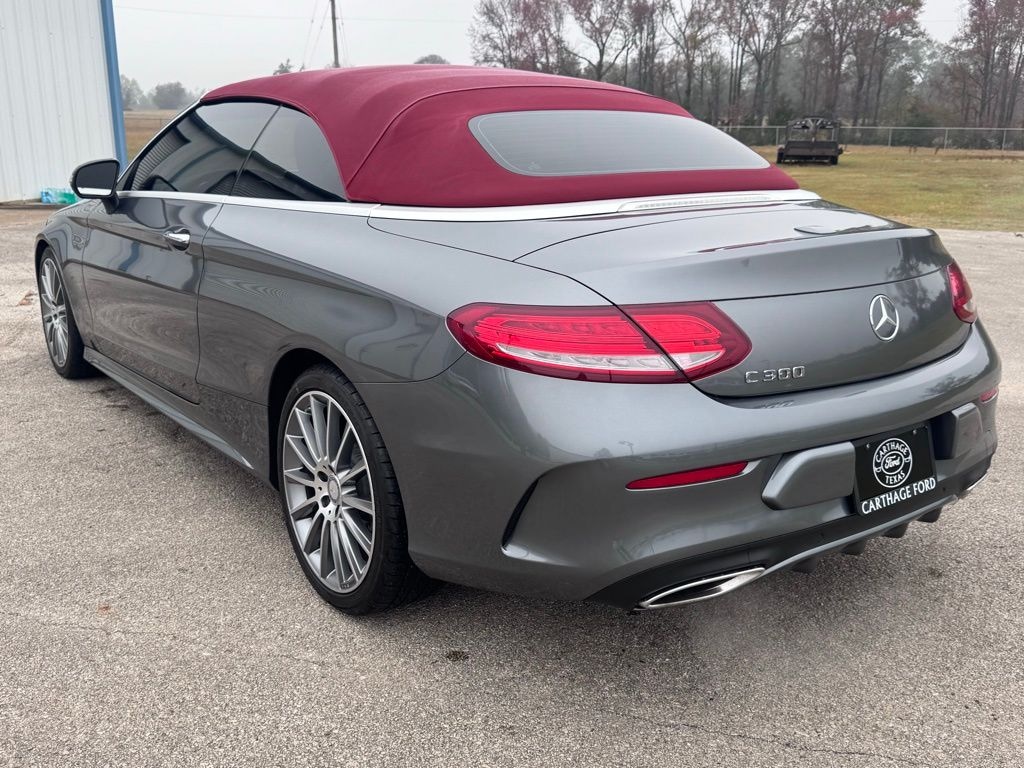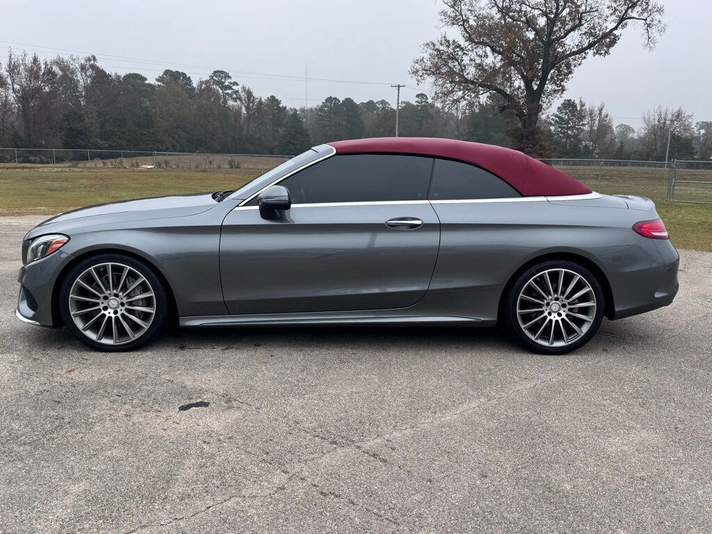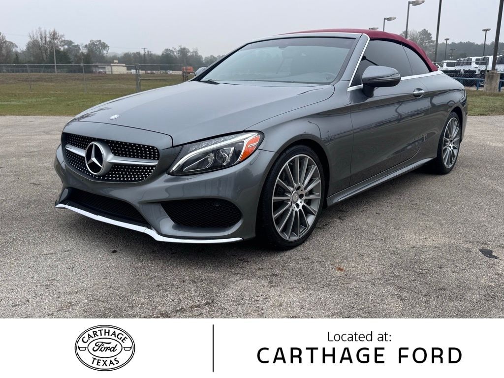 This 2017 Mercedes-Benz C-Class C 300 in Silver comes with the following features: 2.0L I4 Turbocharged 9-Speed Automatic RWD 18" 5-Spoke Alloy Wheels, 4-Way Lumbar Support, 4-Wheel Disc Brakes, 5 Speakers, ABS brakes, Air Conditioning, Alloy wheels, AM/FM radio, Anti-whiplash front head restraints, Auto tilt-away steering wheel, Auto-dimming door mirrors, Auto-dimming Rear-View mirror, Automatic temperature control, Black SoftTop, Brake assist, Bumpers: body-color, CD player, Child-Seat-Sensing Airbag, Compass, Convertible roof lining, Convertible roof wind blocker, Delay-off headlights, Driver door bin, Driver vanity mirror, Dual front impact airbags, Dual front side impact airbags, Electronic Stability Control, Emergency communication system: mbrace2, Extended Mobility Tires, Exterior Parking Camera Rear, Four wheel independent suspension, Front anti-roll bar, Front Bucket Seats, Front Center Armrest, Front dual zone A/C, Front reading lights, Fully automatic headlights, Garage door transmitter: Homelink, Glass rear window, Head restraints memory, Heated door mirrors, Heated front seats, Illuminated entry, Integrated roll-over protection, Knee airbag, Low tire pressure warning, MB-Tex Upholstery, Memory seat, Occupant sensing airbag, Outside temperature display, Overhead airbag, Overhead console, Panic alarm, Passenger door bin, Passenger vanity mirror, Power adjustable front head restraints, Power convertible roof, Power door mirrors, Power driver seat, Power Heated Front Seats w/Driver Seat Memory, Power passenger seat, Power steering, Power windows, Premium audio system: COMAND®, Radio data system, Radio: Audio 20 - Radio w/Bluetooth, Rain sensing wipers, Rear anti-roll bar, Rear fog lights, Rear side impact airbag, Rear window defroster, Remote keyless entry, Security system, Single CD Player, Speed control, Speed-sensing steering, Split folding rear seat, Steering wheel memory, Steering wheel mounted audio controls, Tachometer, Telescoping steering wheel, Tilt steering wheel, Traction control, Trip computer, Turn signal indicator mirrors, Variably intermittent wipers, and Weather band radio.
