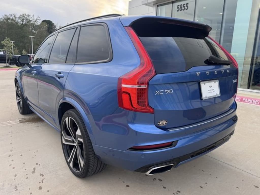 This 2020 Volvo XC90 T6 R-Design in Blue Metallic comes with the following features: I4 Turbo Automatic with Geartronic AWD AWD and Charcoal Leather AWD, Charcoal Leather, 14 Speakers, 3rd row seats: bucket, 4-Wheel Disc Brakes, ABS brakes, Air Conditioning, Alloy wheels, AM/FM radio: SiriusXM, Anti-whiplash front head restraints, Apple CarPlay/Android Auto, Auto High-beam Headlights, Auto-dimming door mirrors, Auto-dimming Rear-View mirror, Automatic temperature control, Brake assist, Bumpers: body-color, Delay-off headlights, Driver door bin, Driver vanity mirror, Dual front impact airbags, Dual front side impact airbags, Electronic Stability Control, Emergency communication system: Volvo On-Call, Exterior Parking Camera Rear, Four wheel independent suspension, Front anti-roll bar, Front Bucket Seats, Front Center Armrest w/Storage, Front dual zone A/C, Front fog lights, Front reading lights, Fully automatic headlights, Garage door transmitter: HomeLink, harman/kardon® Speakers, Heated door mirrors, Heated Front R-Design Sport Seats, Heated front seats, Illuminated entry, Knee airbag, Leather Shift Knob, Low tire pressure warning, Memory seat, Nappa Leather Seating Surfaces, Navigation System, Occupant sensing airbag, Outside temperature display, Overhead airbag, Panic alarm, Passenger door bin, Passenger vanity mirror, Power door mirrors, Power driver seat, Power Liftgate, Power moonroof, Power passenger seat, Power steering, Power windows, Premium audio system: Sensus Connect, Radio data system, Radio: harman/kardon Premium Sound w/Sensus Nav Pro, Rain sensing wipers, Rear air conditioning, Rear anti-roll bar, Rear dual zone A/C, Rear fog lights, Rear reading lights, Rear seat center armrest, Rear window defroster, Rear window wiper, Remote keyless entry, Roof rack: rails only, Security system, Speed control, Speed-sensing steering, Split folding rear seat, Spoiler, Sport steering wheel, Steering wheel mounted audio controls, Tachometer, Telescoping steering wheel, Tilt steering wheel, Traction control, Trip computer, Turn signal indicator mirrors, Variably intermittent wipers, Wheels: 20 5-Spoke Black Diamond Cut Alloy, and Wheels: 22 5-Double Spoke Black Diamond Cut.